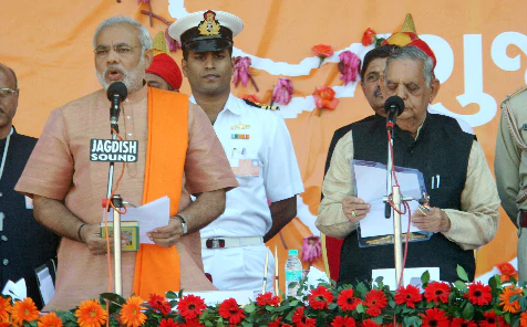 BJP wins 2007 Gujarat Assembly Elections. Narendra Modi sworn-in as CM for 3rd time